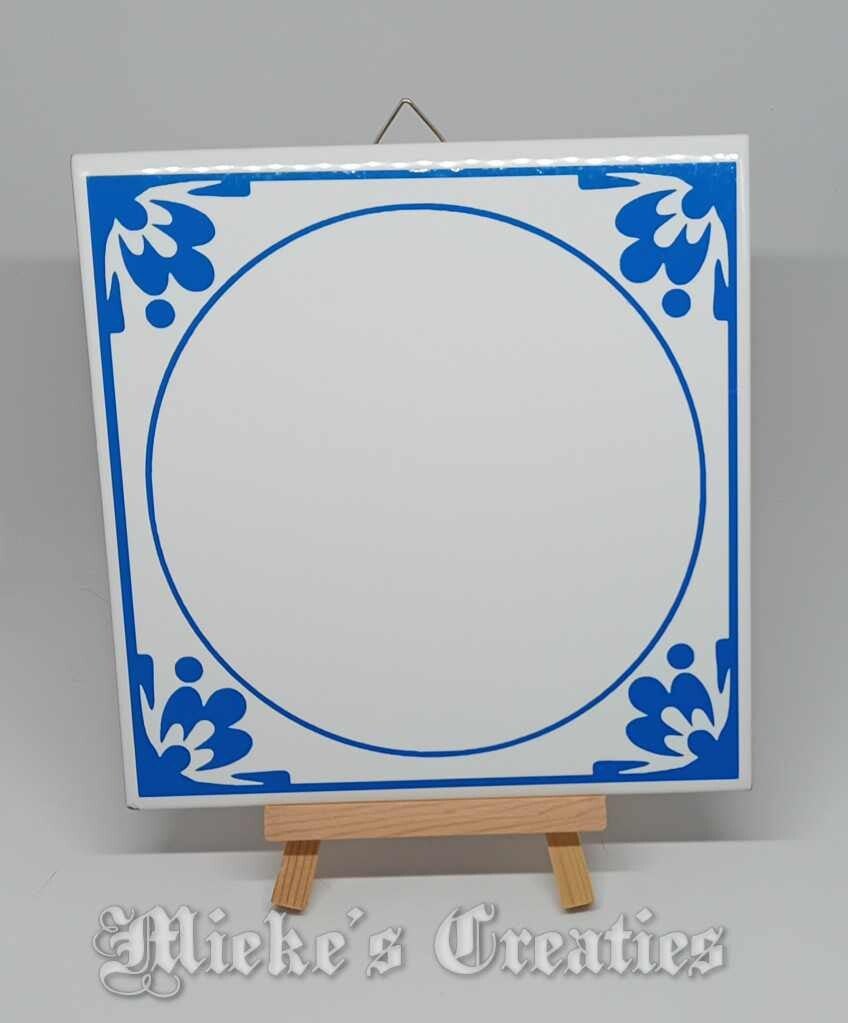 de tegeltje is 15x15 en zal voorzien worden van een ophang haakje.